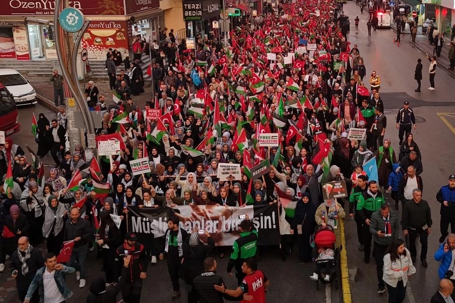 Saat 18.00’de İlyasbey Camii önünden başlayan yürüyüş, Kent Meydanı’na kadar devam etti. Binlerce Gebzeli, şehrin cadde ve sokaklarını vicdanın sesiyle doldurdu. Katılımcılar, Gazze’de süren zulme dikkat çekmek ve Filistin halkına destek vermek için tek yürek oldu.